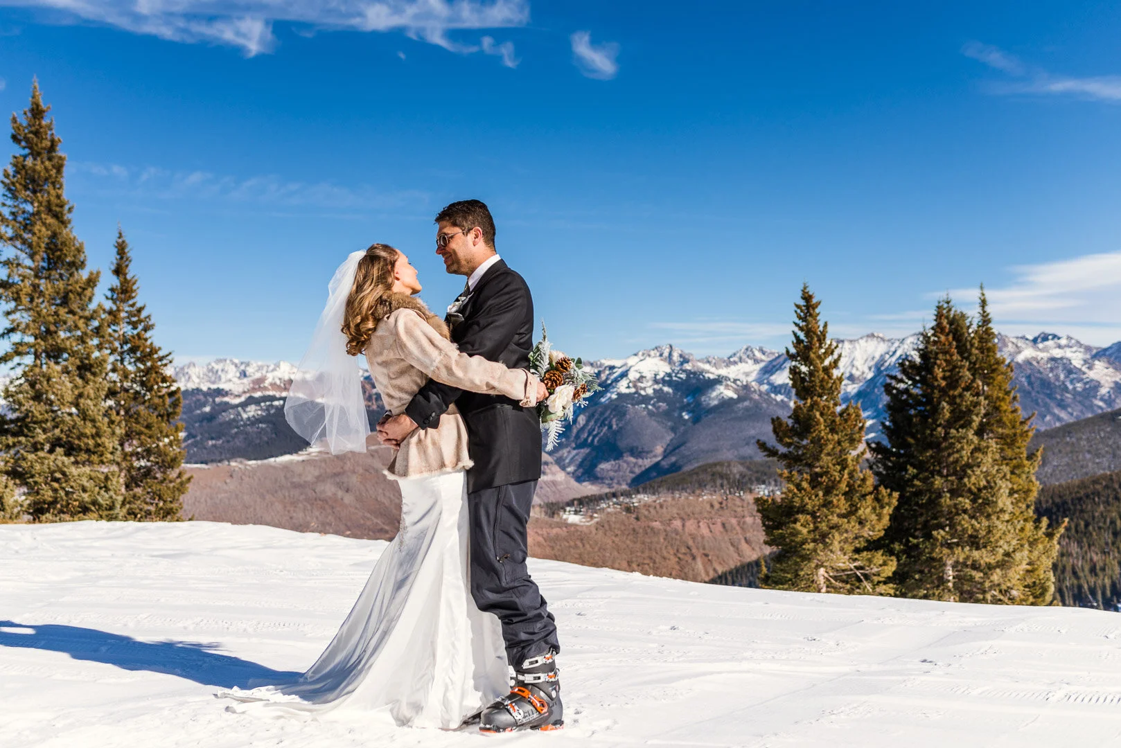 After 15 years of marriage, Heidi and Gary decided to renew their vows while vacationing in Vail. They spend their day skiing dressed to the nines and enjoying the beautiful weather. They took in the incredible views from the top of the mountain, and we took some portraits with the Gore Range and Mount of the Holy Cross as the unbeatable backdrop.